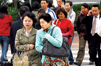 昨天,广州街头,一阵寒风吹来,路人掖紧衣服。