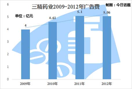 那么,三精制药的广告费有多吓人呢?据媒体报道,2013年,由于哈药高层变动,刘占滨已经被“杯酒释兵权”了。他正式掌管三精制药是在2009年到2012年间。根据三精的年报,2009年,三精制药广告费是4亿元,2010年为4.61亿元,2011年和2012年分别是5.10亿元和5.06亿元,连年增长。一位业内人士就分析说,“广告投哪家媒体与公司的一把手有着密切的关系。刘占滨此前就曾被内部人士发传单举报。”所以,这里有着很大的寻租空间。