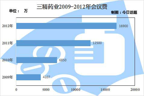 这时候怎么办呢?进入到基本药物目录中的OTC药物也是可以由医院终端来卖的。一个数字是,2009年新医改实施以来,OTC药物在医疗终端的销售占比逐年提高,已经由2009年的40.27%上升至2011年的40.67%,并且还在攀升。而相应的是三精的营销策略也有调整。在2010年的年报中提到,“三大终端网络即医疗市场、基层医疗市场和零售连锁市场。公司将通过学术会议和新药的招商工作提高处方药品在医疗终端的销售;通过基本药物集中采购工作、地办建设工作和社区学术推广工作提高普药在基层医疗的市场份额;通过与零售连锁药店的战略合作,做好主导产品的终端维护和二线产品的推广工作。”这是以前没有过的提法。2009到2012年,这几年间,三精的会议费分别为:4107万、6850万、1.25亿、1.69亿元,呈现出火箭般的增速。