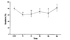 3.PMN凋亡和坏死细胞定量[4] :Annexin V和PI双标法。分离纯化的PMN悬浮于100μl孵育缓冲液中(10mM Hepes, 140mM NaC1, 5mM CaCl2 , pH7.4),加2μl Annexin-V-FLUOS和2μlPI(50ug/ml),室温10~15分钟,加0.4ml孵育缓冲液终止反应,流式细胞仪双通道检测5000个细胞,激发波长488nm,发射波长515nm、610nm。