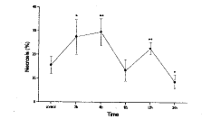 图2 肺灌洗液中PMN坏死的变化