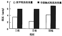 7. 非接触式眼压与Goldmann压平眼压的关系:LASIK术后Goldman压平眼压改变量小于非接触式眼压改变量(t检验,P<0.05)(图1)。