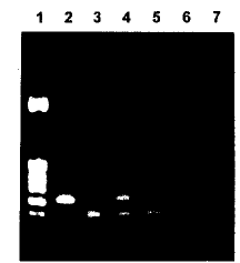 , 百拇医药 1 .pBR322/hinf1,2.HPV16阳性对照,3.HPV18阳性对照,4.HPV16+HPV 18阳性对照,5.HPV18阳性标本,6.阴性标本,7.阴性对照