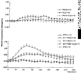 图1 甘氨酸、多粘菌素B拮抗内毒素的平均体温