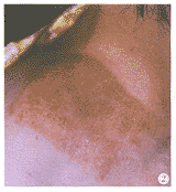 图2左肩可见约5.5cm×4cm脱屑性红斑,其上见少量红丘疹