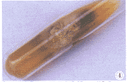 图4不含放线菌酮葡萄糖蛋白胨琼脂基培养10d后菌落为灰褐色,培养基为淡褐色,1个月后菌落表面出现放射状沟纹,并见下沉现象