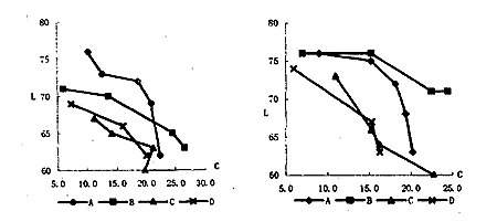 采用CIE1976 Lab颜色系统对采集的数据进行处理,C*ab=[(a*)2+(b*)2]1/2