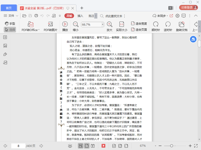 冰鉴全鉴第二版作者是(清代)曾国藩,曾国藩采用由外而内的方式,全面的阐述了自己在识人用人方面的心得,即使放在现在,曾国藩的许多独到见解仍然值得我们去借鉴。