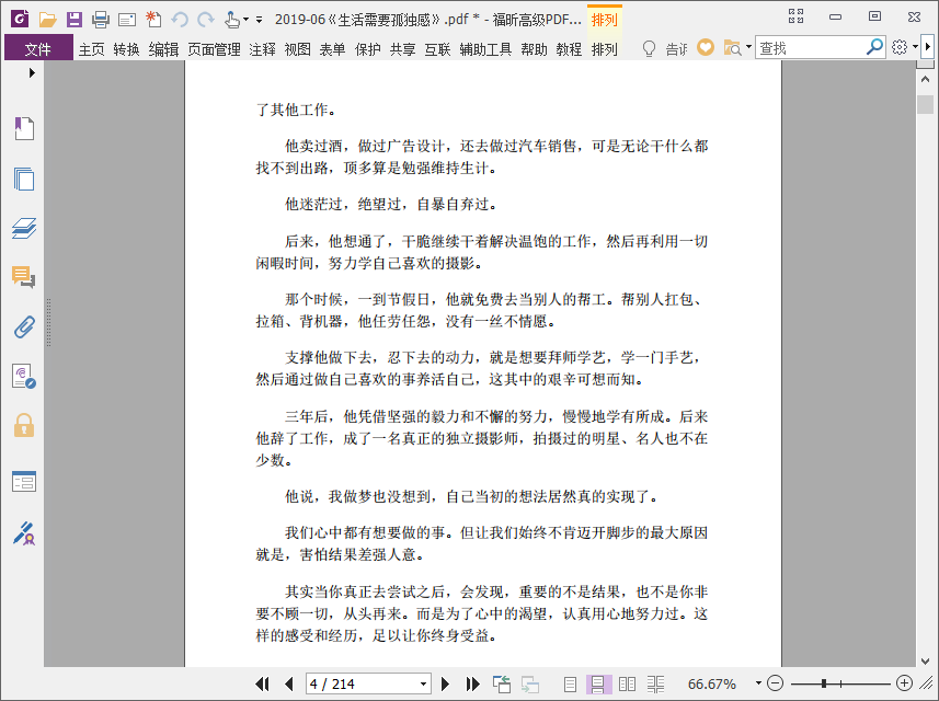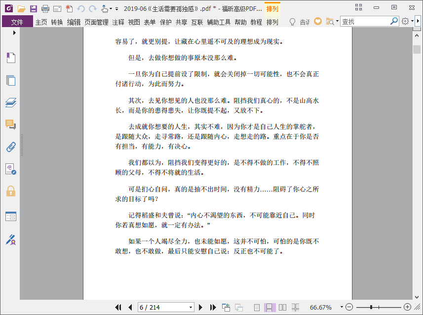优秀的人都会有段独处的时光。一个人独处的时光,也是一个人自我升华的时光。我们要学会独处,学会和自己对话,才能更透彻的了解自己。独处的时候我们可以有许多事情可以做,读书便是一个很好的选择。古语说得好“腹中有书气自华”, 一个读书人的气场是由内而外散发出来的。如果承受不了一个人的孤独感,又怎么会静下心来读书学习知识呢?如果平日的我们为了躲避一时的孤独,而把大量时间浪费到低质量的无效社交中去,最终的结局我可以肯定的回答你,这必将是竹篮打水一场空。不但没能提高自己,反而耽误了自己的大好时光。