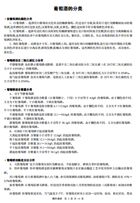 1 11 1、 、、 、葡萄酒的分类 葡萄酒的分类 葡萄酒的分类 葡萄酒的分类 ………………………………………………………… ………………………………………………………… ………………………………………………………… ………………………………………………………… 第 第第 第 2 22 2 页 页页 页