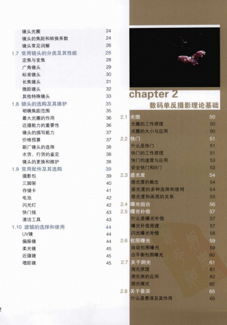 数码单反摄影从入门到精通包含了数码相机的分类,数码单反相机的定位以及选购要点,镜头的基础知识,滤镜的选择和使用等等,非常具有专业性。