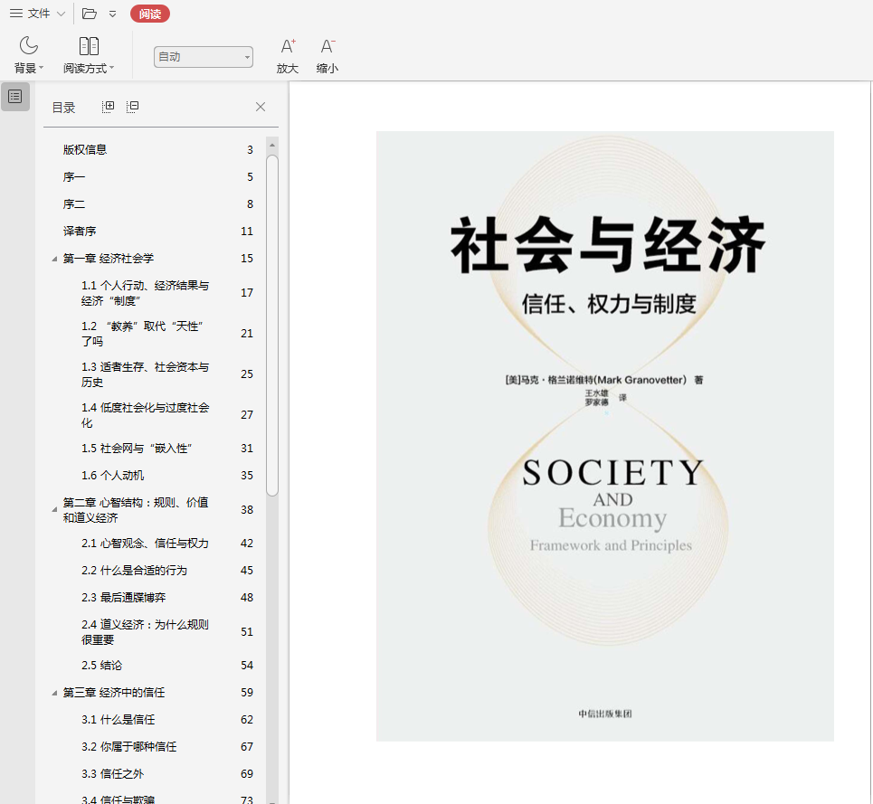社会与经济是作家马克·格兰诺维特写的关于社会和经济关系的书籍,主要讲述了经济社会学,心智结构,经济中的权力,个体行为和社会制度等等。