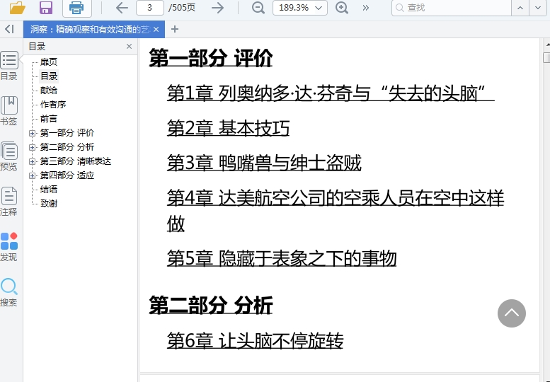 洞察:精确观察和有效沟通的艺术,人在做任何事情时候能够事先洞察是非常重要的,而洞察的前提就是需要事前细心做好功课,这本书带你了解洞察的技巧。