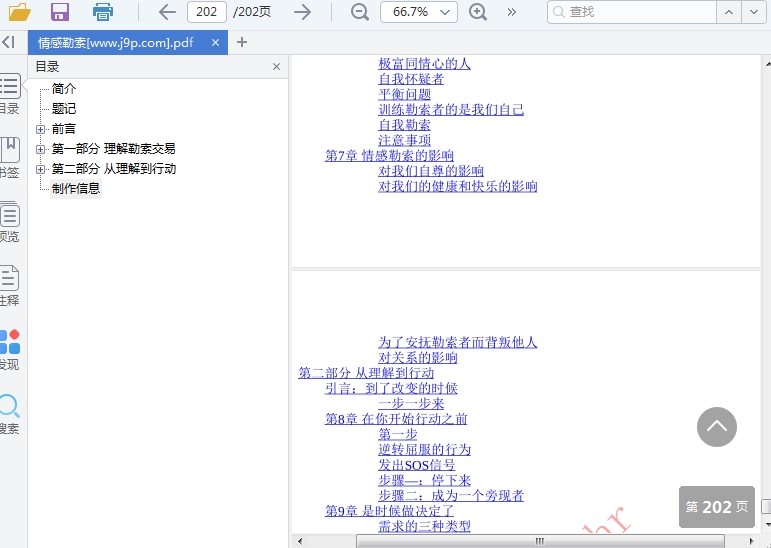 情感勒索,这是一本关于心理学相关的书籍,在书中一共分为了2个部分11个章节,用户可以在这里了解到许多不同的人际关系的利用,值得一看。