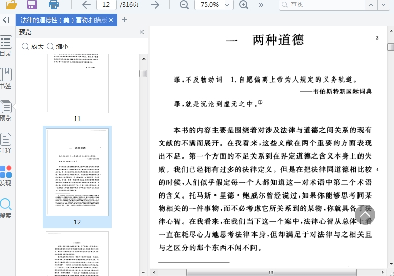 本书的内容主要是围绕着对涉及法律与道德之间关系的现有文献的不满而展开。在我看来,这些文献在两个重要的方面表现出不足。第一个方面的不足关系到在界定道德之含义本身上的失败。我们已经拥有过多的法律定义。但是在把法律同道德相比较的时候,人们似乎假定每一个人都知道这一对术语中第二个术语的含义。托马斯·里德·鲍威尔曾经说过,如果你能够思考同某物相关的一件事物,而不必考虑它所关系到的某物,你就具备了法律心智。在我看来,在我们当下这一个案中,法律心智从总体上看一直在耗尽心力地思考法律本身,但却满足于对法律与之相关且与之区分的那个东西不闻不问。