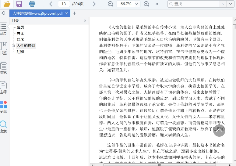 人性的枷锁,这是一本关于文学小说类型作品,是有英国小说作家威廉·萨默塞特·毛姆编写的,对这本小说喜欢的网友可以来看看。
