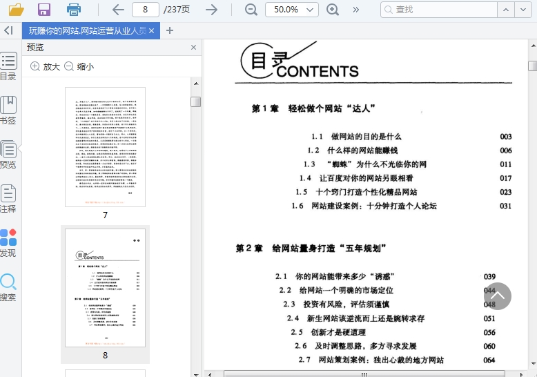 玩赚你的网站,这本书对于做网站或者想做网站的人来说都可以看一看的,里面详细的为你讲解了利用网络轻松赚钱,讲了如何把一个网站做成功等内容。
