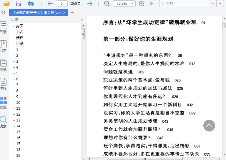 发掘你的竞争力,这是一本关于提升自我的励志类,书中一共分为了四个部分内容,读者可以在这里一步一步学到规划自己的人生,发现自己的有点!