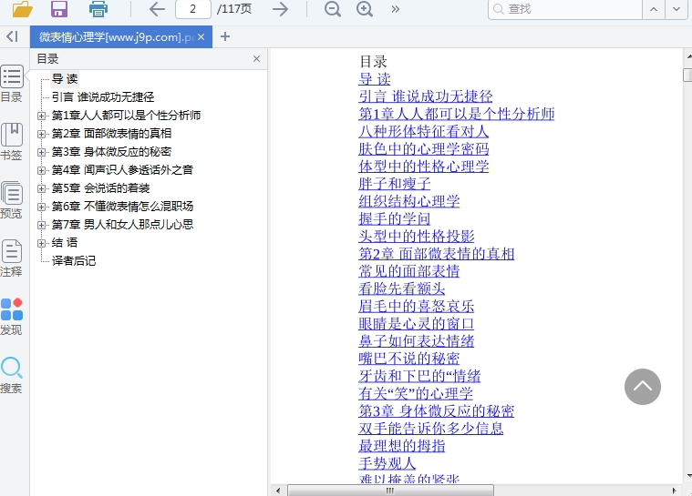 《微表情心理学:读心识人准到骨子里》关键词:微表情。全书由七章组成,作者结合自己二十多年的咨询经验,从身体和情感的关系角度,全面解析了身体语言背后的微妙心理,让你在商场、职场、情场无往不利!