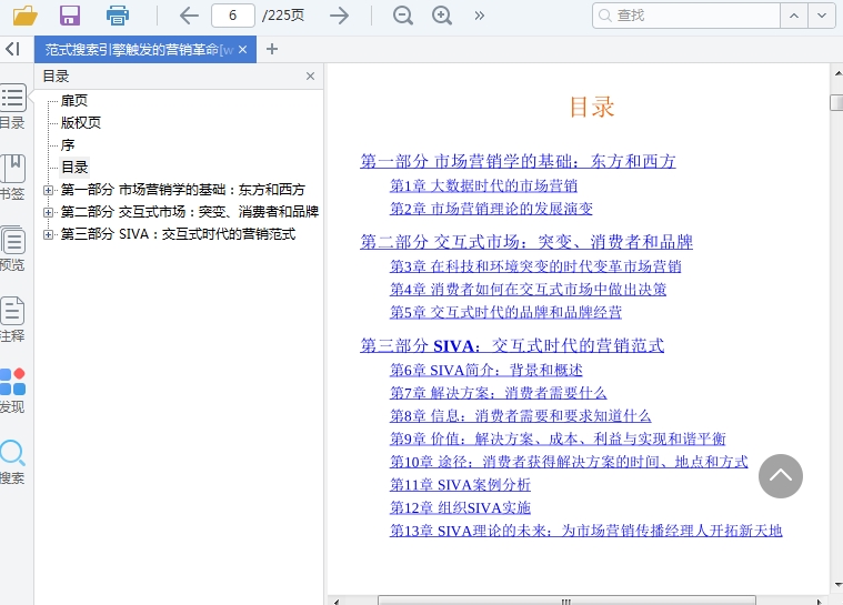 《SIVA范式:搜索引擎触发的营销革命》主要探讨搜索引擎的发展给营销方式带来的革命性改变,并提出了SIVA分析范式的新理论。基于搜索引擎的营销方式,可以理解为:消费者通过搜索引擎留下了庞大的有关偏好、需求、渴望信息的数据,企业通过这些数据,明确消费者的个性化特征,把每一个消费者视觉化,把握个体特殊的潜在消费需求通过提供知识(回答问题)和物品的方式,传递到有这些特殊需求的个人,创造企业的价值。这种营销方式,不仅仅是传统的“卖产品”,更是为客户提供经验和解决方案。