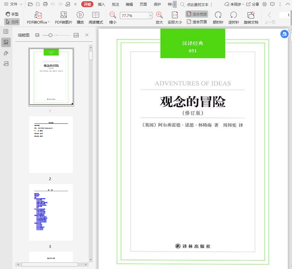 《观念的冒险》一书的中译本出版已11年了。这十来年中,译者又