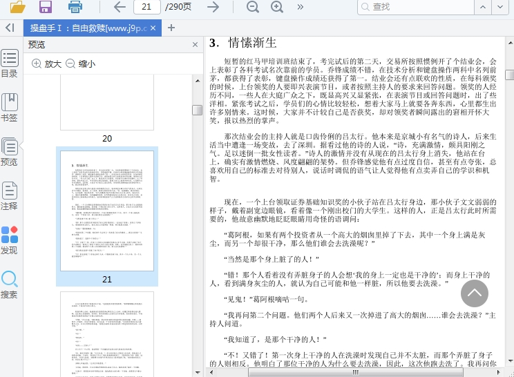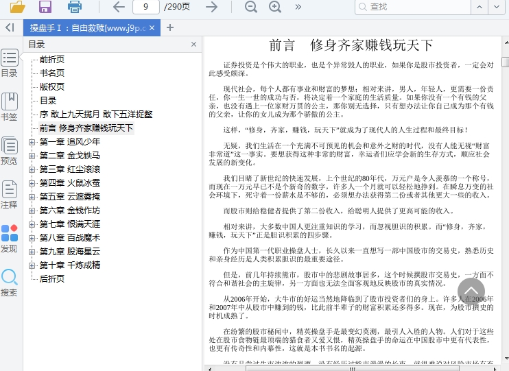 操盘手Ⅰ:自由救赎,本书是一本长篇的股票投资小说。书中一共分为了十个章节来书写内容,里面的故事非常的精彩真实,股市人都可以看看!