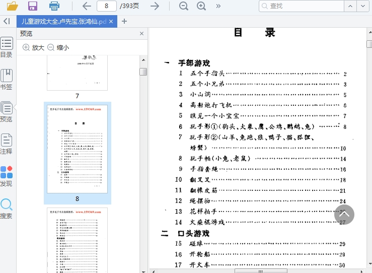 儿童游戏大全,这本书的内容主要为儿童提供众多的小游戏,这些游戏不仅能够锻炼孩子的体力、思考力,还能够认识到传统留下来的经典,有助于文化的传承。