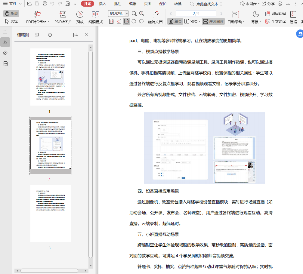这本空中课堂直播教程包含了三张页面内容,主要讲述了软件直播互动场景,手机直播互动场景,视频点播教学场景,以及设备直播应用场景,小班直播互动场景,伪直播互动场景等等,分类很多,满足各种课程直播形式,帮助教师在线高效教学,帮助学生热情参与其中,改变传统的教学方式,让直播课程变有趣。