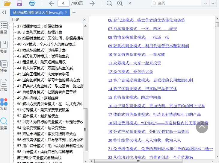商业模式创新设计大全,这是一本关于企业商业模式的创新探讨的书籍,书中从分析成功企业商业模式概述,到最后利用自己的思维进行商业模式拓展,内容非常丰富实用。