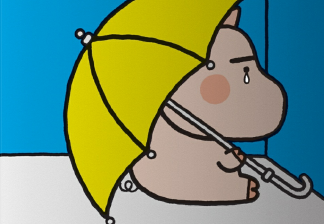 猪拿雨伞抵挡花洒淋下的水,好多时候,困境又怎么不是我们自身有意无意制造的呢。或许,事情没那么复杂,问题没那么大,难过也没有那么难过。