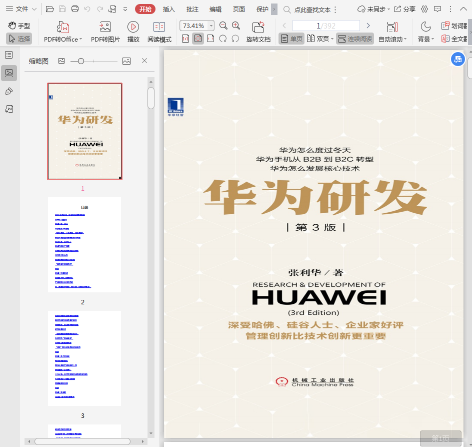 《华为研发》是一本讲创业的书,其中有华为早期创业时的艰难、苦涩、屈身民宅的那段时光。同时这也是一本提供成功创业实践经验的书,从产品创新到人才激励、项目选择及融资方案。