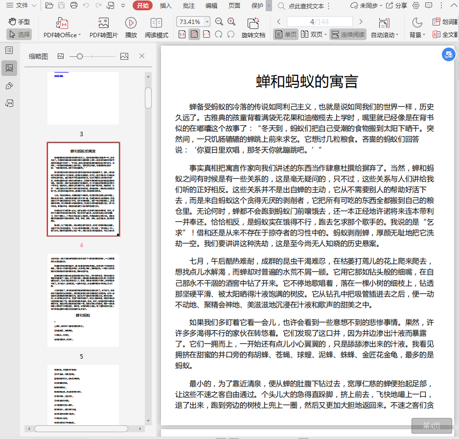 仓里。无论何时,蝉都不会跑到蚂蚁门前嚷饿去,还一本正经地许诺将来连本带利