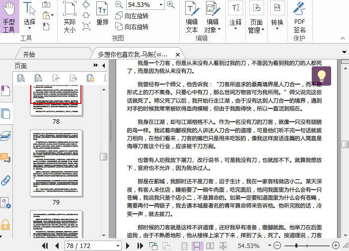 话就死了。师父死了以后,我开始行走江湖,由于没有达到人刀合一的境界,遇到