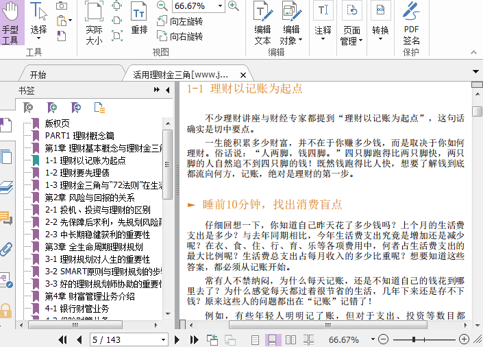 2.这本书将理财的每个环节都做了介绍,从理念到实际操作,从储蓄、保险、股票、基金到房产,读者通过阅读,可以对理财有一个全方位的系统的认知,避免片面性。