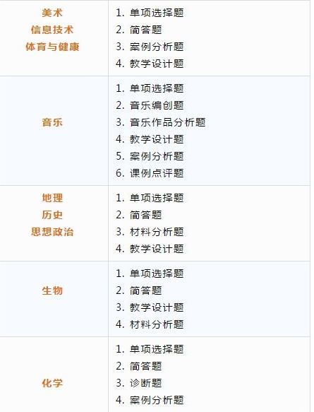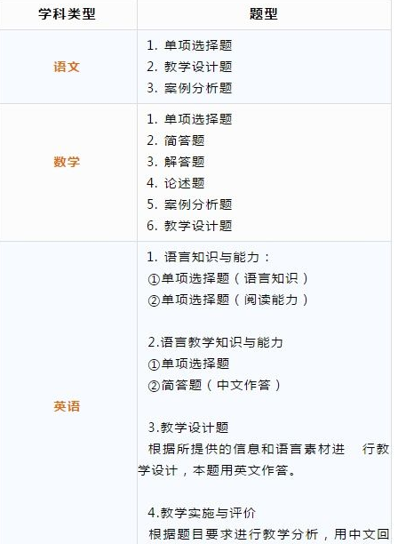 三、从上表得知,《学科知识与教学能力》不仅会考本学科的知识,而且都会到教学设计题,也就是我们常说的写教案。另外,还包括《教育教学知识与能力》里面的教学评价、教学实施等知识点。