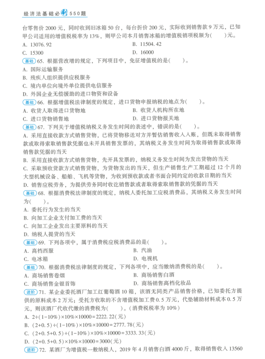 经济法基础必刷550题答案介绍
