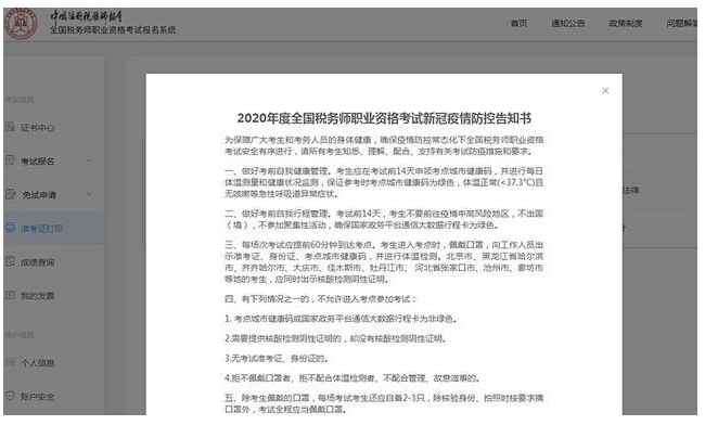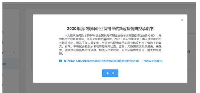 第二步、阅读并确认2020税务师考试疫情防控告知书;