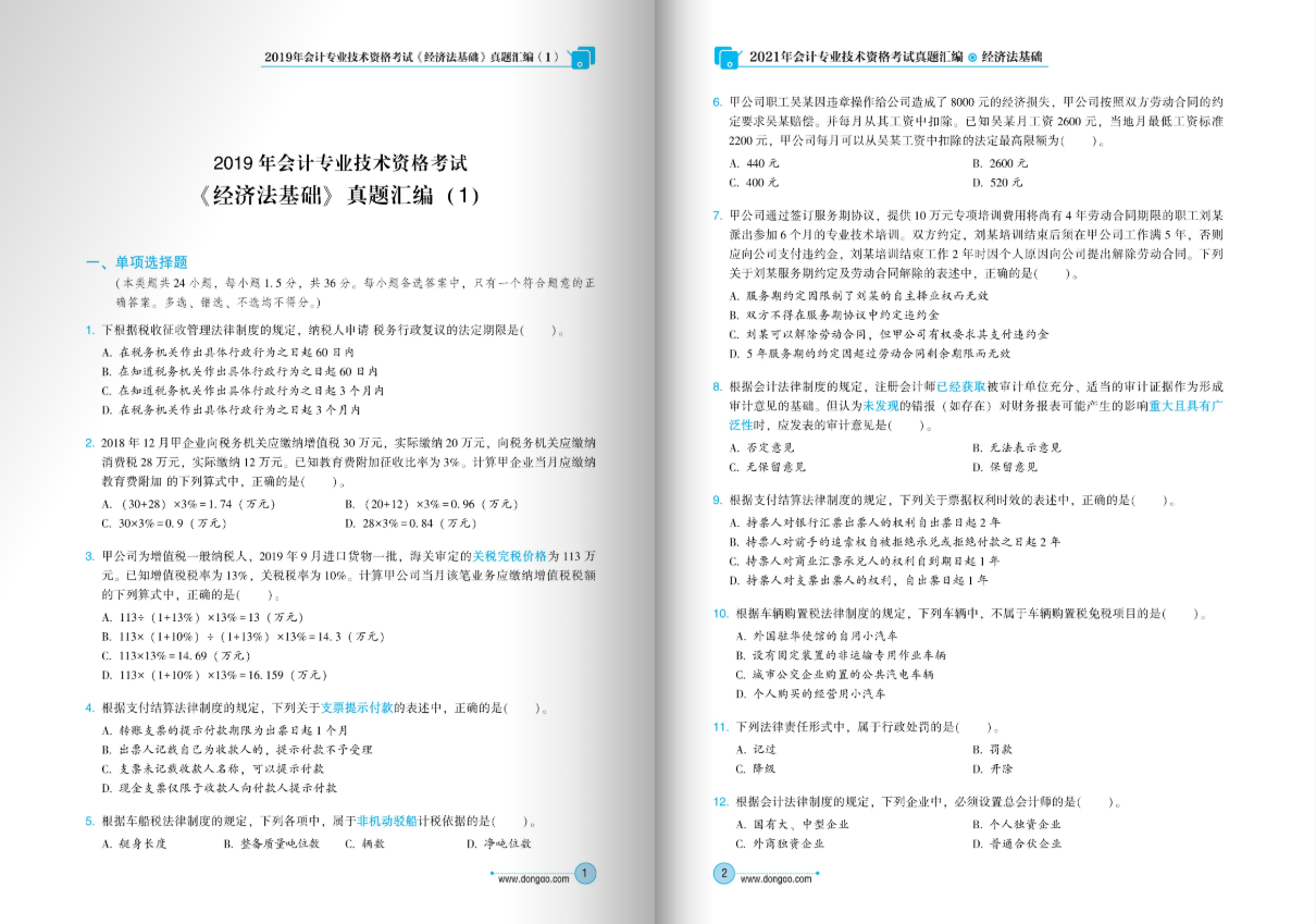 2019 年《经济法基础》考试的题型题量,目前没有明确的通知,以往年度的情况:单项选