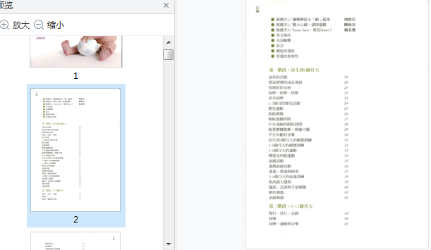 PART 1 宝宝体智运动 聪明更强壮一、科学做运动,身体强壮发育好◎宝宝的生理特点 ◎运动探索是宝宝成长的必然过程二、宝宝体智运动,越动越聪明婴幼儿大动作发展顺序和规律三、安全事项要牢记◎活动前 ◎活动中 ◎活动 PART 2 宝宝动起来(0~12个月)一、0~12个月宝宝的基础活动技能0~12个月宝宝运动技能指标◎抱宝宝——移动新生宝宝*自然的方式 ◎转头练习◎抬头练习 ◎教宝宝翻身 ◎爬行练习宝宝爬坐交替好处多◎学坐练习宝宝学坐的几个阶段◎站立练习二、宝宝的尿布体操◎足底按摩 ◎张开手掌 ◎足跟游戏 ◎按摩趾肚◎锻炼脊背 ◎撑起上身 ◎小手摸脚 ◎两侧翻滚尿布体操注意事项纸尿裤与布尿裤的比较三、宝宝的抚触按摩◎面部抚触 ◎胸部抚触 ◎腹部抚触 ◎手臂抚触◎手臂伸展◎手部抚触 ◎腿部抚触 ◎脚掌抚触 ◎背部抚触宝宝抚触**知识.四、宝宝的被动操(0~6个月)◎准备活动 ◎扩胸运动 ◎伸屈肘关节运动 ◎肩关节运动◎伸展上肢运动 ◎下肢屈伸运动 ◎两腿轮流屈伸运动◎下肢伸直上举运动 ◎髋关节运动注意事项五、宝宝的主被动操(7~12个月)注意事项◎准备活动 ◎起坐运动 ◎起立运动 ◎提脚运动 ◎弯腰运动◎托腰运动 ◎游泳运动 ◎扶走运动 ◎跳跃运动六、小不点瑜伽◎莲花坐 ◎蹬自行车 ◎蝴蝶飞 ◎倒挂金钟 ◎小眼镜蛇0~3岁宝宝也能学瑜伽七、宝宝爱做的健身游戏◎寻找平衡感 ◎坐飞机 ◎荡飞船 ◎蹦蹦跳跳 ◎骑马操 ◎踢球根据宝宝情绪选择游戏的种类 PART 3 勇敢迈出**步(1~2岁)一、1~旦岁宝宝的基本运动能力1~2岁宝宝运动技能指标◎宝宝学步 ◎宝宝学跑宝宝学跑注意事项◎动手能力培养二、宝宝的小脚丫按摩◎腿部按摩 ◎脚心按摩 ◎轻揉脚跟内外部 ◎从脚跟按摩到脚趾◎脚趾与脚掌相接处 ◎脚趾按摩 ◎脚背按摩宝宝按摩的音乐.三、宝宝的居家保健操◎划船练习 ◎舞蹈练习 ◎吊环练习 ◎平衡练习◎单手够物 ◎投掷练习 ◎跳圈圈 ◎水中转圈宝宝健康成长发育图四、小不点瑜伽◎跨坐式 ◎升降机式 ◎劈腿式 ◎磨磨运动◎小蝗虫 ◎小猫咪 ◎分腿伸展式宝宝学习瑜伽注意事项五、宝宝爱做的健身游戏◎沙包游戏 ◎草地体操游戏 ◎手臂的乐趣 ◎快乐的小脚丫◎四只乌龟 ◎冬天运动操 ◎不倒翁 ◎小蹬车学会控制宝宝游戏。训练的速度 PART 4 跟着妈妈一起快乐运动(2~3岁)一、旦~5岁宝宝的基本运动能力2~3岁宝宝运动技能指标◎翻跟斗练习 ◎单足站立练习 ◎跳跃练习 ◎上下楼梯练习◎走平衡木练习 ◎骑小自行车练习二、宝宝的趣味按摩◎比萨游戏 ◎小蜘蛛按摩 ◎手指(脚趾)按摩游戏◎天气游戏 ◎腹部毛毛虫按摩注意事项三、幼儿健康体操◎双臂背举 ◎双肩周转 ◎左右转肩 ◎伸背弯腰◎握拳伸指 ◎双脚并跳 ◎跳跃前进 ◎踏步扩胸◎仰卧抬腿 ◎双腿画圈 ◎儿歌体操从小培养运动型宝宝四、小不点瑜伽◎小木马 ◎背背驮驮式 ◎亲子犬式 ◎骑马式 ◎轮式 ◎门闩式◎小树 ◎风吹树式 ◎飞翔式 ◎亲子束角式 ◎亲子幻椅式◎亲子三角伸展式 ◎小木偶亲子瑜伽好处多五、宝宝爱做的健身游戏◎青蛙跳◎小闹钟摇呀摇◎手指操 ◎变个圆圆大皮球◎双腿活动游戏 ◎快乐小骑手 ◎身体碰碰操根据宝宝的个性选择游戏坚持三浴锻炼,宝宝更健康 附录 0~3岁宝宝各阶段的体格发育表