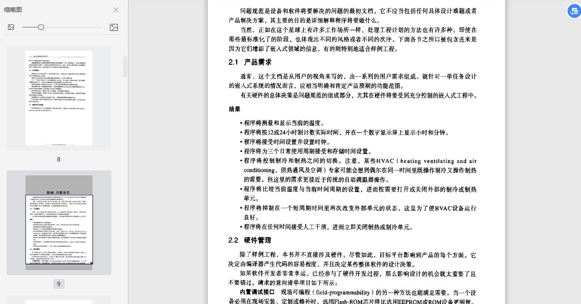 本书的主要样例工程是计算机控制的自动调温器。从一个最初规范开始,我们用与其他任何消费品或控制产品相同的方式逐步求精和增加设备。软件开发是我们关注的焦点,我们将做出任何设计者将要做出的选择和权衡。
