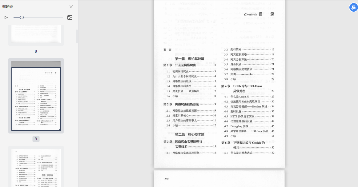第二篇为核心技术篇(第3~9章),详细介绍了网络爬虫实现的核心技术,包括网络爬虫的工作原理、如何用Urllib库编写网络爬虫、爬虫的异常处理、正则表达式、爬虫中Cookie的使用、手写糗事百科爬虫、手写链接爬虫、手写微信爬虫、手写多线程爬虫、浏览器伪装技术、Python网络爬虫的定向爬取技术及实例等。学完这一部分内容,读者就可以写出自己的爬虫了。这部分的爬虫编写采用的是一步步纯手写的方式进行的,没有采用框架。