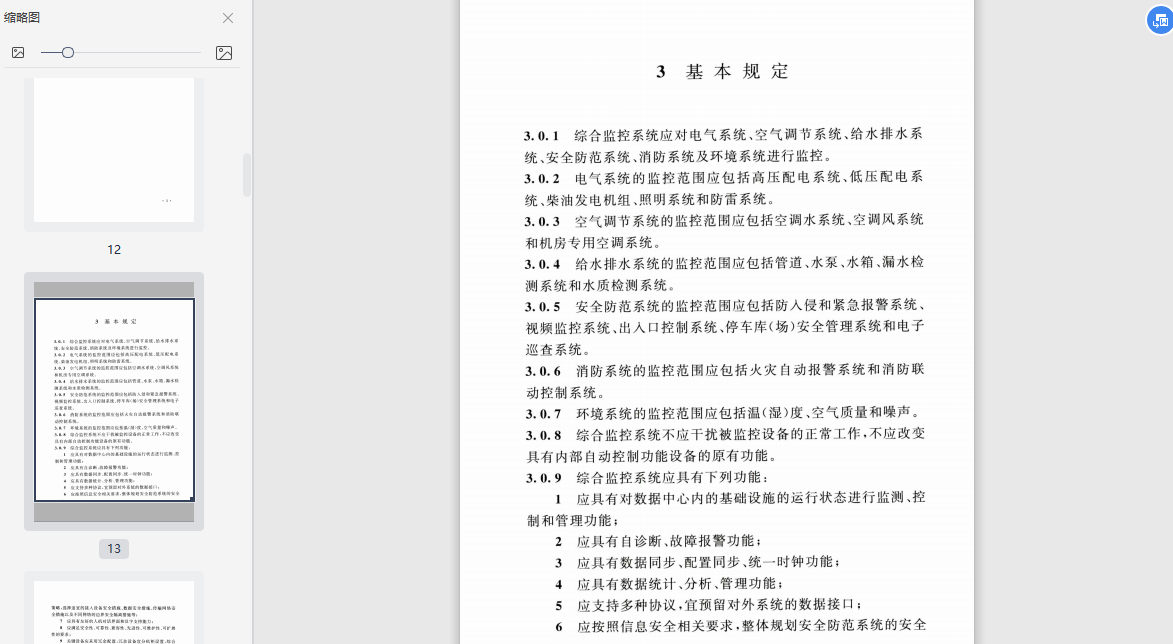 数据中心综合监控系统工程技术标准的主要技术内容是:总则、术语和缩略语、基本规定、监控范围、设计、施工安装、调试和试运行、竣工验收等。