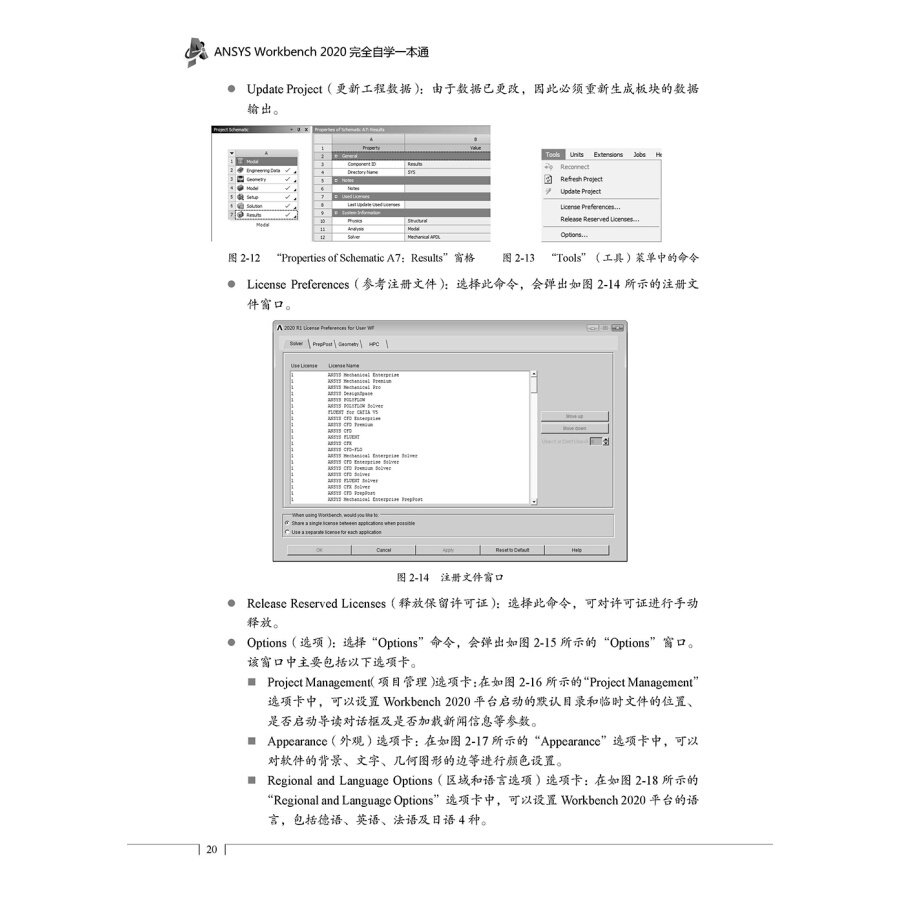 说明:电磁分析模块(Maxwell)、疲劳分析模块(nCode)及复合材料分析模块(ANSYS ACP)需要读者单独安装;另外,本书部分章节的内容需要安装接口程序。