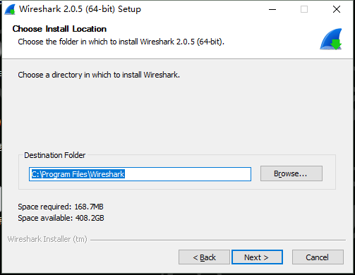 五、接下来进入到的是Wireshark安装路径设置界面,单击【browse】即可设置。