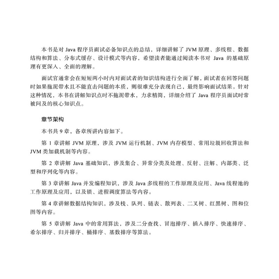 本书是对Java程序员面试必备知识点的总结,详细讲解了JVM原理、多线程、数据结构和算法、分布式缓存、设计模式等面试必备知识点,在讲解时不拖泥带水,力求精简。