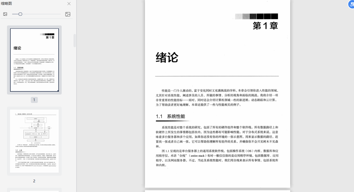 第1 章,绪论。介绍系统性能分析,总结关键的概念并展示了与性能相关的一些例子。