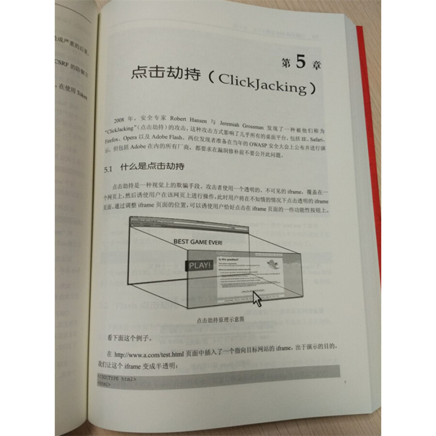 第二篇客户端脚本安全就当前比较流行的客户端脚本攻击进行了深入阐述。当网站的安全做到一定程度后,黑客可能难以再找到类似注入攻击、脚本执行等高风险的漏洞,从而可能将注意力转移到客户端脚本攻击上。