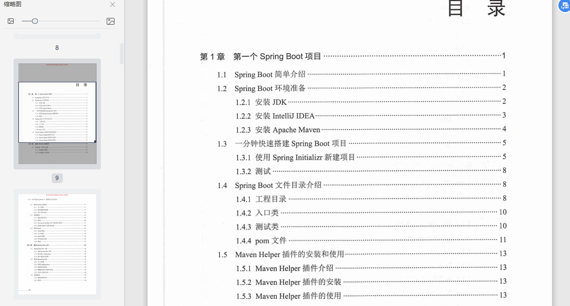 第1章介绍开始学习Spring Boot之前的环境准备、如何一分钟快速搭建Spring Boot、Spring Boot文件目录以及Maven Helper插件的安装和使用等。