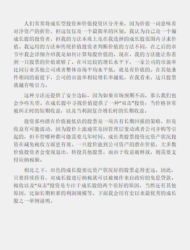 增长率而确定的。通常理想的做法都是确保预期的市盈率远低于增长率。