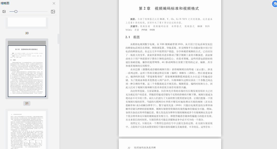书中对多种视频编码标准都进行了解读,并且进行了横向评测,囊括了主要的视频编码标准,以及转码问题。